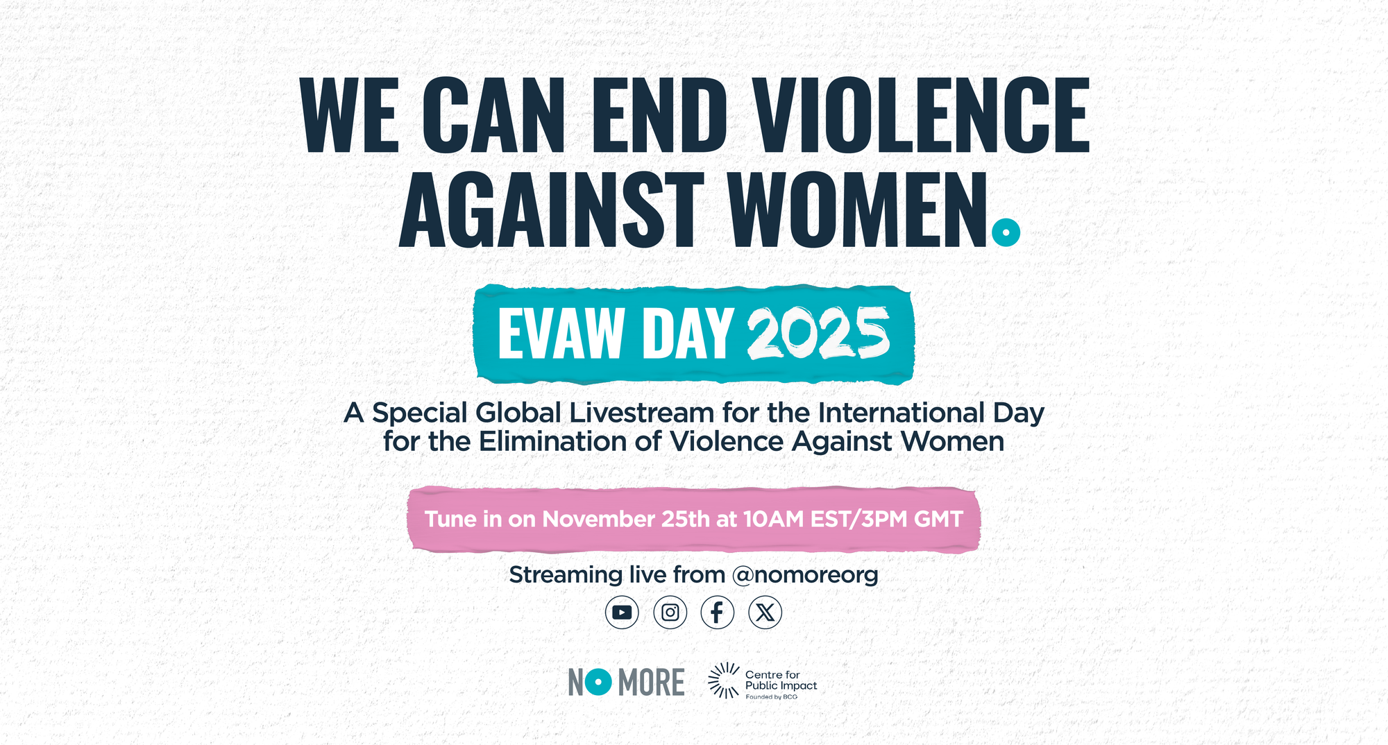 On November 25th, in partnership with the Centre for Public Impact, we’ll mark the International Day for the Elimination of Violence Against Women (EVAW) with our second annual global livestream. With one in three women worldwide experiencing gender-based violence in their lifetime, this day underscores the urgent need for awareness, action, and support.